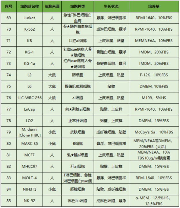 超全汇总!这108种实验室常见的细胞系赶紧了解一下!